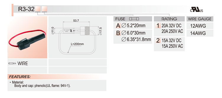 6*30/5*20拉線盒保險(xiǎn)絲座 UL CSA 20A250V
