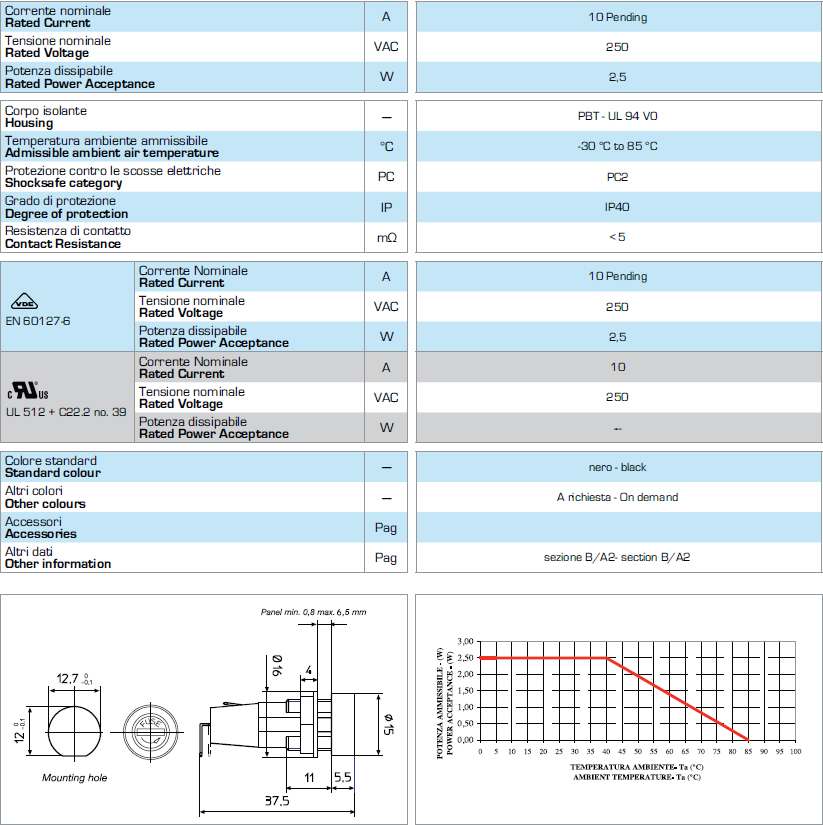 5*20 面板安裝保險絲座 PTF-35 S VDE UR CSA 10A250V