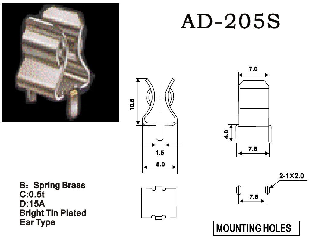 6*30 PCB板安裝保險(xiǎn)絲夾 AD-205S ROHS