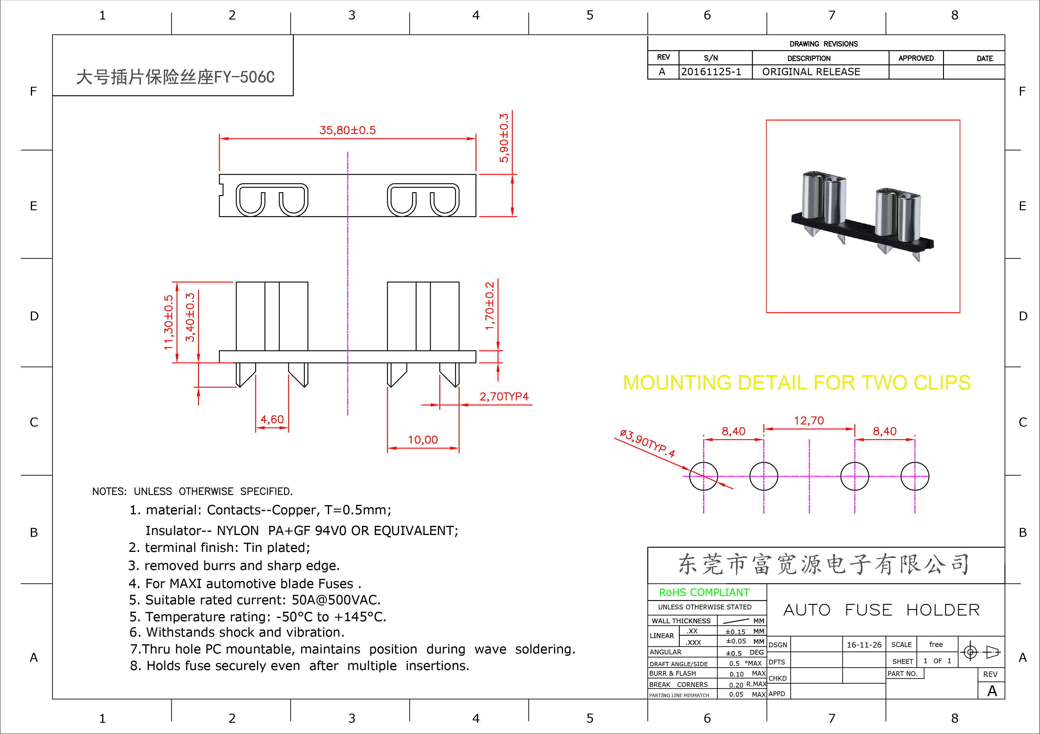 大號插片PCB安裝保險絲座FY-506C